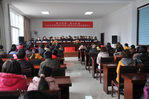 2月28號(hào)下午,黃山學(xué)院和我公司舉行校企合作培訓(xùn)班開(kāi)學(xué)典禮暨就業(yè)實(shí)習(xí)基地揭牌儀式,縣委常委、宣傳部長(zhǎng)蔣曉放、縣人大常委會(huì)副主任程春偉、縣政協(xié)副主席程海兒、黃山學(xué)院副院長(zhǎng)樊嘉祿出席儀式,縣人社局、經(jīng)信委、科技局、團(tuán)縣委、公司負(fù)責(zé)人及繼續(xù)教育班75名